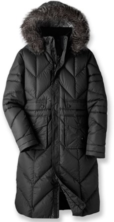 Gently used very warm jacket. Specially designed for a flattering feminine fit and head-to-knee warmth this cozy coat is warmly insulated with 650 fill power premium-quality goose down. Isis Whisper down coat has zip handwarmer pockets.